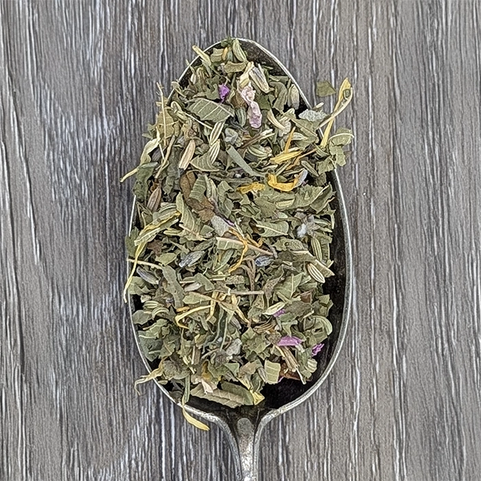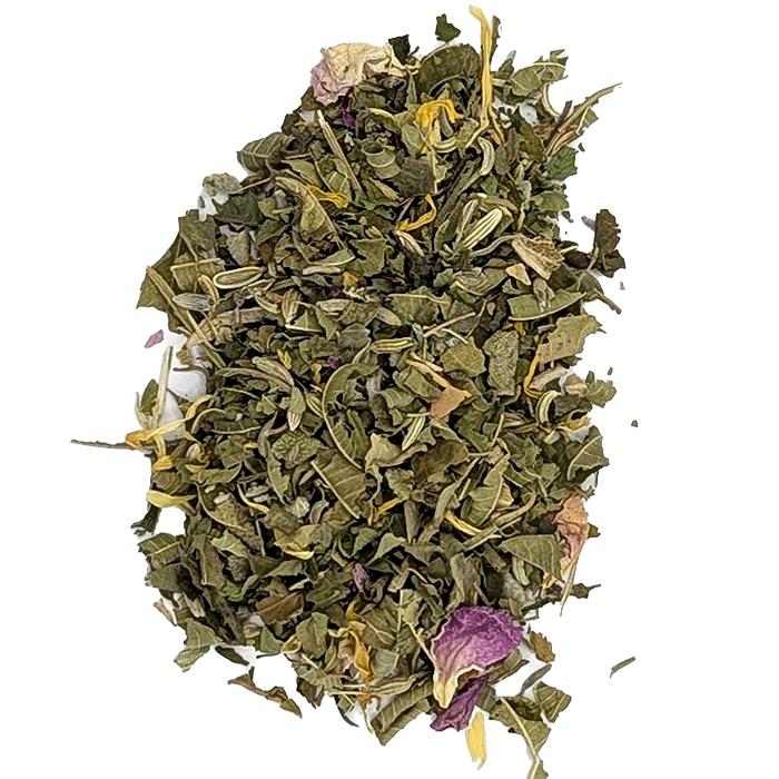 Lemon verbena *, fennel *, sage *, rosemary *, thyme *, lavender flowers *, marigold flowers *, parsley *, rose petals *.