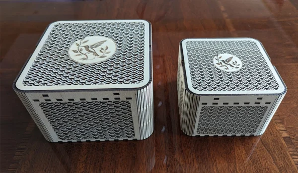 Esta caja de madera con cerradura viene con una cuchara medidora de acero inoxidable. Los tés y las infusiones están bien protegidos en latas metálicas reutilizables.