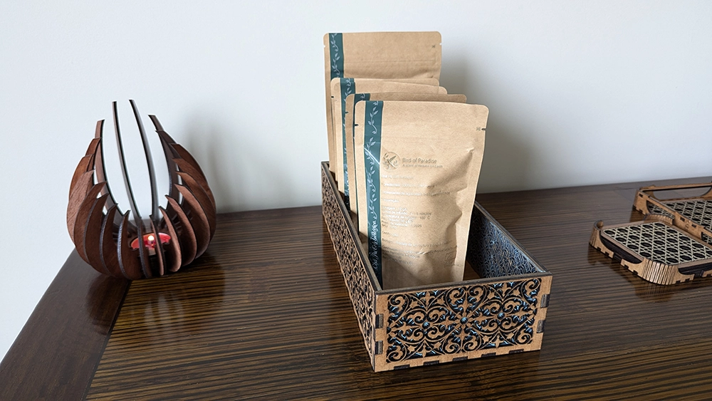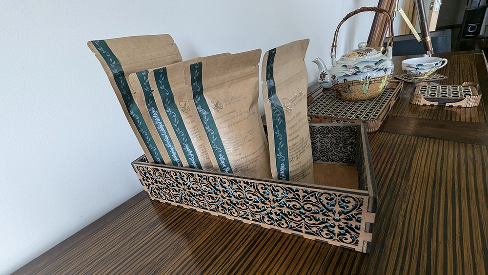 A camada exterior tem a forma de um padrão floral clássico em madeira envernizada em mogno. A colocação destas duas camadas produz um padrão delicado e complexo que irá adicionar um toque de elegância vintage à sua cozinha ou sala de jantar. Concebido a pensar na funcionalidade e na estética, o organizador apresenta um interior espaçoso que pode acomodar confortavelmente saquetas de chá de tamanhos variados. As suas dimensões convenientes facilitam o armazenamento e a recuperação das suas misturas favoritas, mantendo-as bem organizadas e de fácil acesso